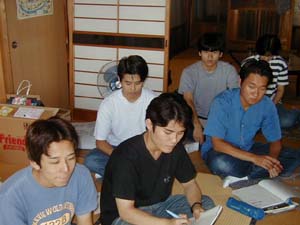 この写真ちょっと気分が良くなった頃ですね。両サイドに別れ、足伸ばし組と正座組となるといったたわいのない、しかしにぎやかな楽しい時間を過ごしました。