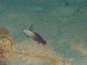これ、30メートル以遠にしかいない”深海の女王”アケボノハゼです。はまってしまうと大変なのですが(深海ですから)結構いらっしゃるようですよ。