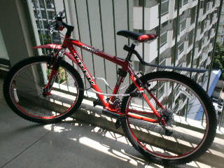 赤いマウンテンバイク。