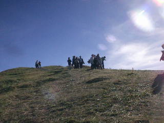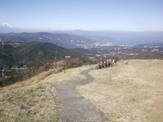 下の写真は円周を歩いているところです。眺望もきいた山頂は絶景でした。伊豆大島が海に浮かんでいるように見え、遠くの島々もよく見えました。