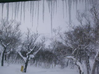 中から窓越しに撮った写真なのですが氷柱(つらら)がドンドンとけていっています。(写真では判りにくいとは思いますが)