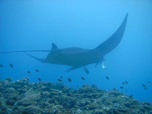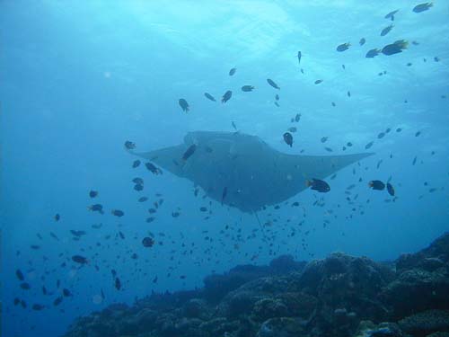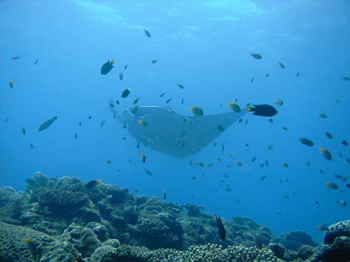 マンタポイントからの戻りにいつもと違ったコース取りをして頂いたのですが(この経験ワクワク、ドキドキで、長く行っていますが初めてのことでした)、細い洞窟のような穴から出たとたんバッタリと、ほんとバッタリといった具合に再度マントと遭遇です。