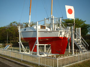青木洋さんが金具に到るまで手作りで制作し、世界一周(1974年)したというヨットです。最小の船による世界一周としてギネスブックにも掲載されているそうです。