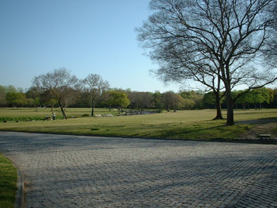 強い西日に照り輝いている木々、青々とした芝生、その上を二人で歩きながらちょっぴり<春>を感じた一時でした。