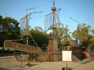 そのKさんが「ちびっ子広場」の船の遊具(とても大きく立派でした)を見つけるや、荷物をサッと置き、一目散に船に向かって走り出します。